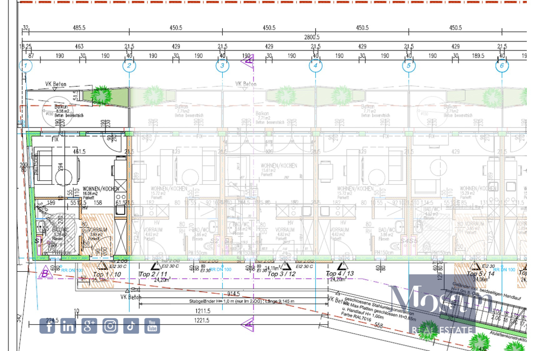 In the immediate vicinity, or within walking distance, there are grocery shops, shops for everyday needs, as well as pharmacies and other relevant shops and facilities, and a variety of dining options – from cafés to various restaurants, as well as several sports centres.